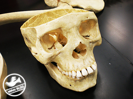 写真の頭蓋骨は、授業で使った教材です。蝶形骨をはじめて見ました。
