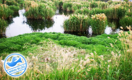 池があって、ススキ?みたいなのがいっぱい生えてます。
