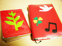 透明なビニールのブックカバーを買ってきて、それに厚紙と折り紙でカバーを作ります