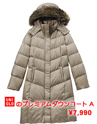 ユニクロのプレミアムダウンコートA(ベージュ)。